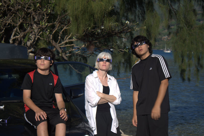 It turns out that 98% is a little anti-climactic when it comes to solar eclipses. No one understands how I managed to schedule our stay in the Tuamotus, where the eclipse was total, for a few days after the event, but we did see it from Mo’orea, where it was something between 98 and 99%. It happened between about 8 and 10 in the morning and it definitely got dimmer, but what it  really got was colder. Abraham says that during the Silurian (or some other pre-Permian era) there was a 20% reduction in solar radiation and the whole earth froze over. I can believe it. (Btw, these facts may be slightly off; I didn’t bother to corroborate; it just seemed like an interesting idea).