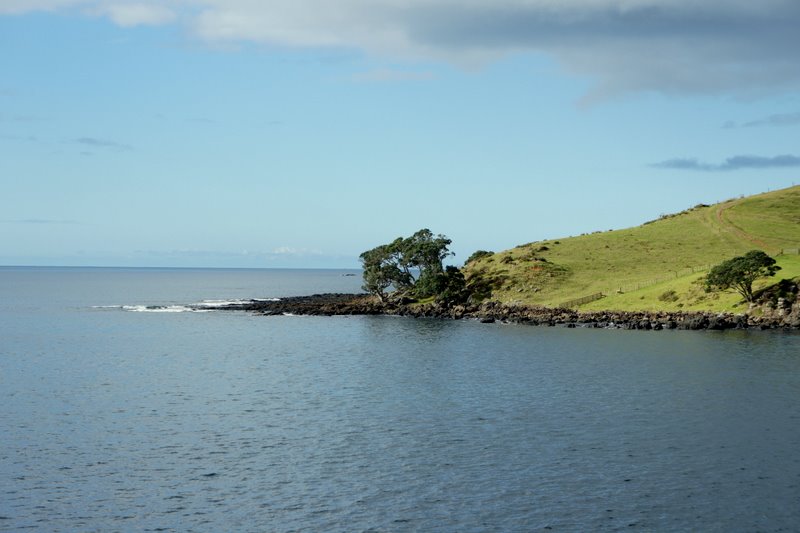 Abraham, who was last here when he was 7 (Matiu was not quite 2; Dani still in utero), finds it at once strange and familiar. He said he thought it looked like Australia, and I know what he means. It’s the flora, for starters, that gives one this antipodean feeling. It’s so unlike what we have at home — Norfolk pines, tree ferns, ti tree, manuka, all that olive colored bush — yet we are now clearly in a temperate climate and not in the tropics anymore.