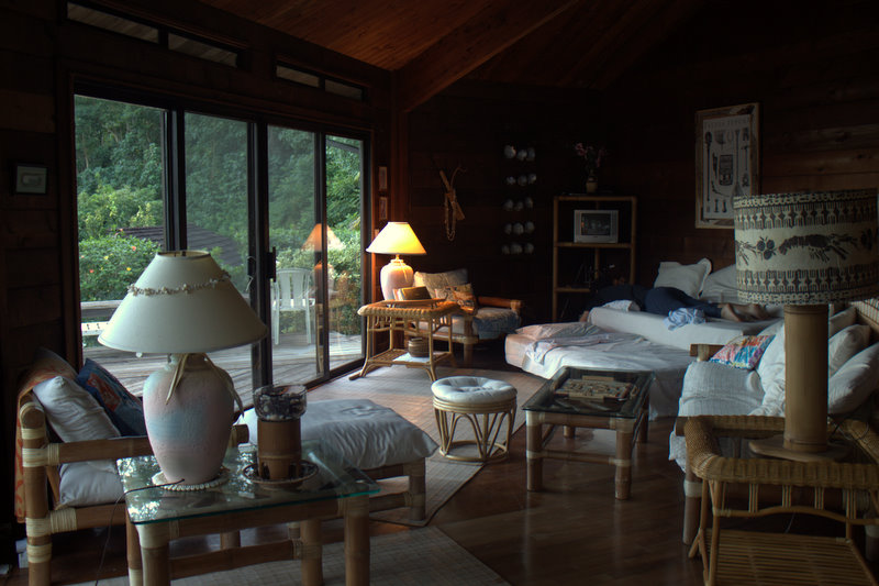 Five islands (7 if you count the ones we landed on) and 3 archipelagoes later, we have said farewell to French Polynesia. Our last day of travel was pretty challenging. We left Rangiroa around 10 am and flew back to Tahiti where, in a moment of clarity, I had booked us into a hotel. We had to be at the airport at midnight for a 2:30 am flight to New Zealand and originally the plan was just to wait it out somewhere. Fortunately, I realized that this was a really bad idea and instead we went to a hotel with a pool and a restaurant. The room was ordinary enough, but the view from the lobby was impressive.